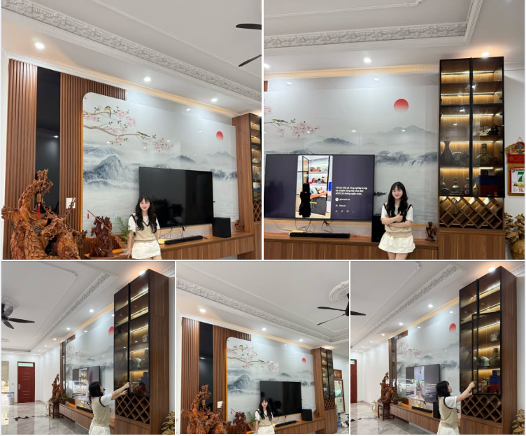 - Thi công nội thất phòng khách gỗ MDF lõi xanh chống ẩm tại Ninh Bình.