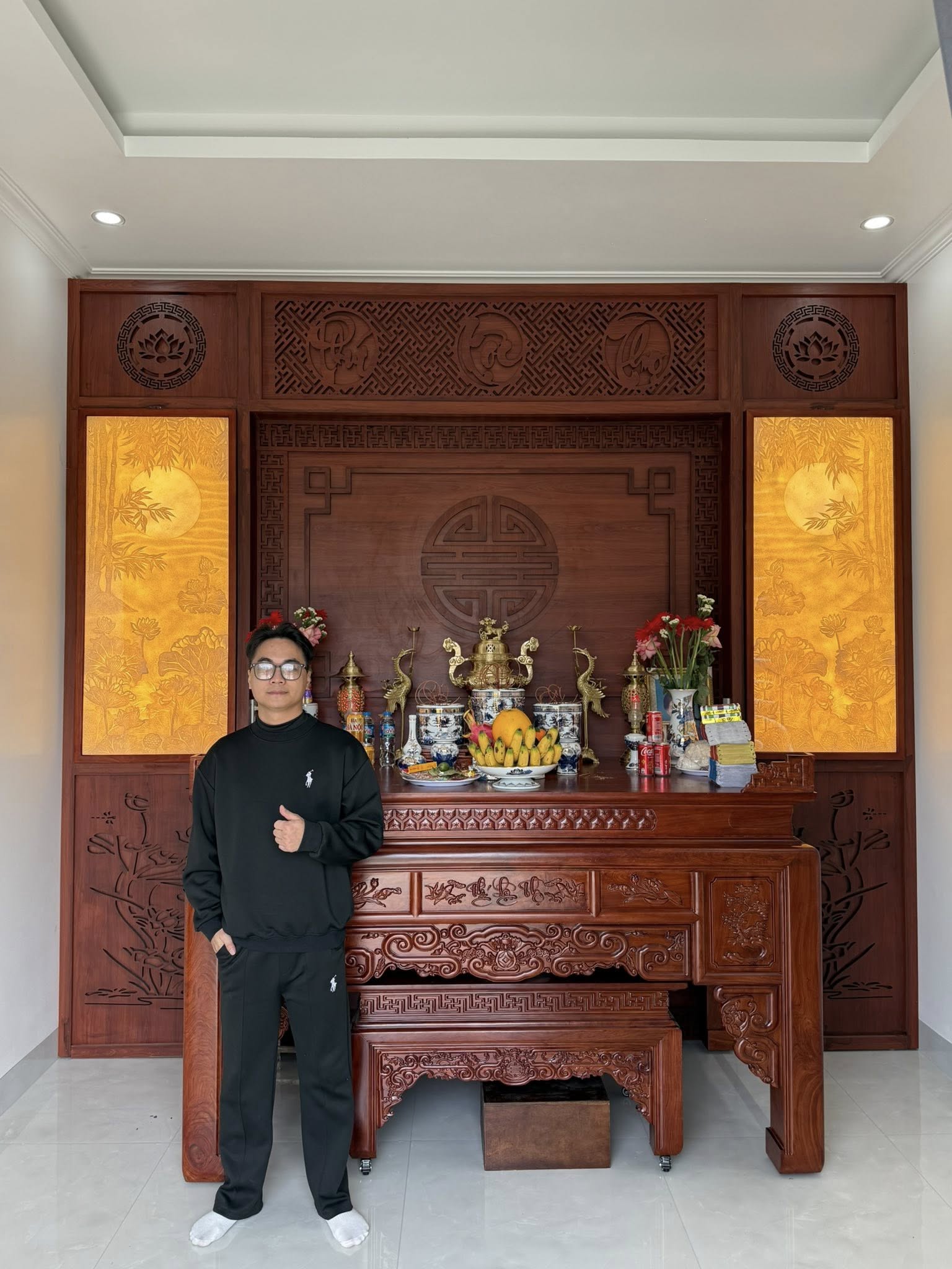 Hệ vách phòng thờ được gia công bằng công nghệ CNC hiện đại, tạo nên các họa tiết hoa văn sắc nét và tinh tế. Các chi tiết như hoa sen, họa tiết cổ điển và hoa văn phong thủy giúp không gian thờ cúng trở nên trang trọng và hài hòa.
